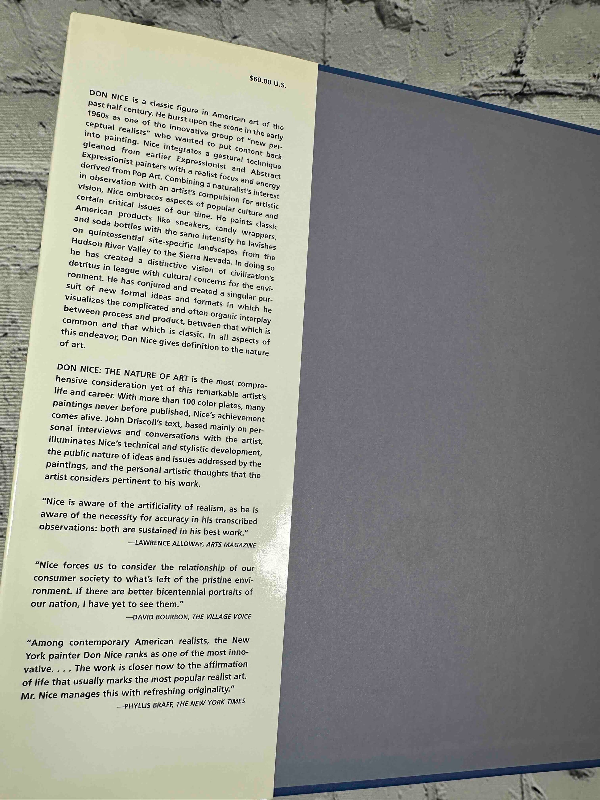 Don Nice: The Nature of Art presents an in-depth look at the work of contemporary American painter Don Nice, known for merging elements of realism with Expressionist and Pop Art influences. Through plentiful color plates and insightful commentary, author John Driscoll explores Nice’s artistic vision, techniques, and the ways he integrates close observation of the natural world with dynamic visual style. The book draws on interviews and conversations with Nice to illuminate his creative process and place in modern American art.