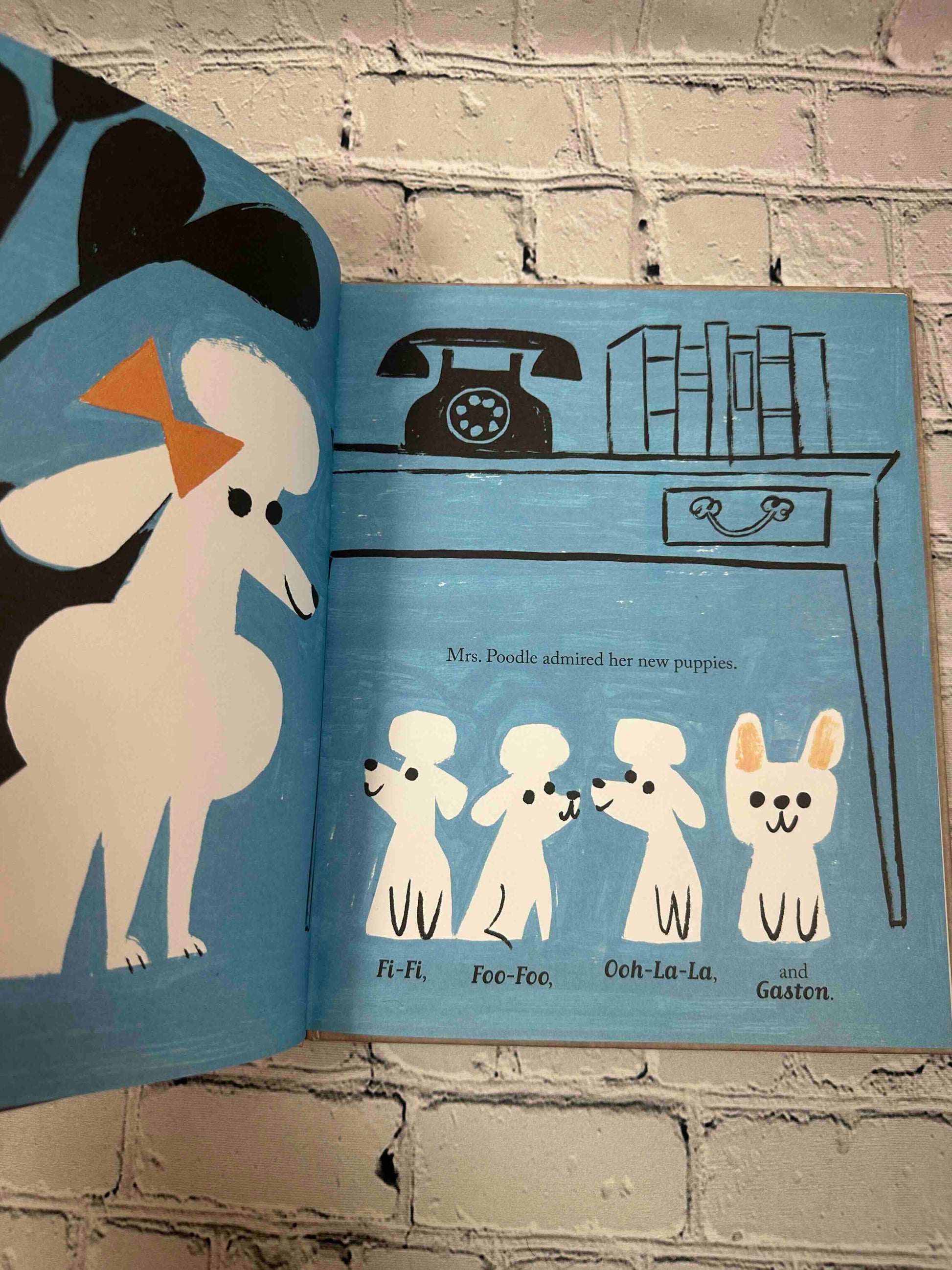 This is the story of four puppies: Fi-Fi, Foo-Foo, Ooh-La-La, and Gaston. Gaston works the hardest at his lessons on how to be a proper pooch. He sips—never slobbers! He yips—never yaps! And he walks with grace—never races! Gaston fits right in with his poodle sisters.