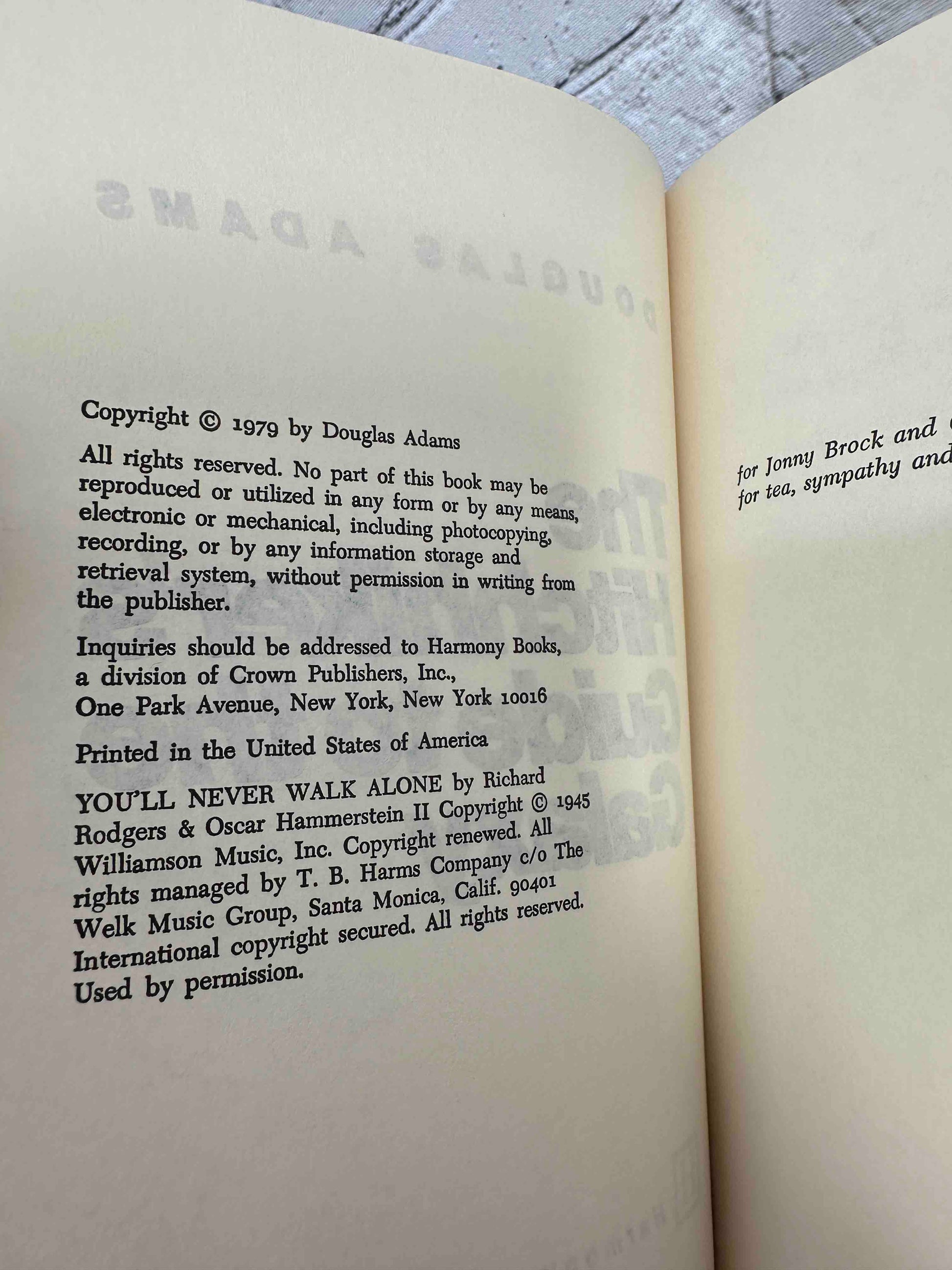 Condition Notes: The Covers are in excellent condition. Very Slight signs of shelf wear if any. The pages are in clean and crisp. Bindings are firm and tight. Dust Jackets show minor to moderate shelf wear. Hitchhikers & So Long has a small tear at the top along joint of spine