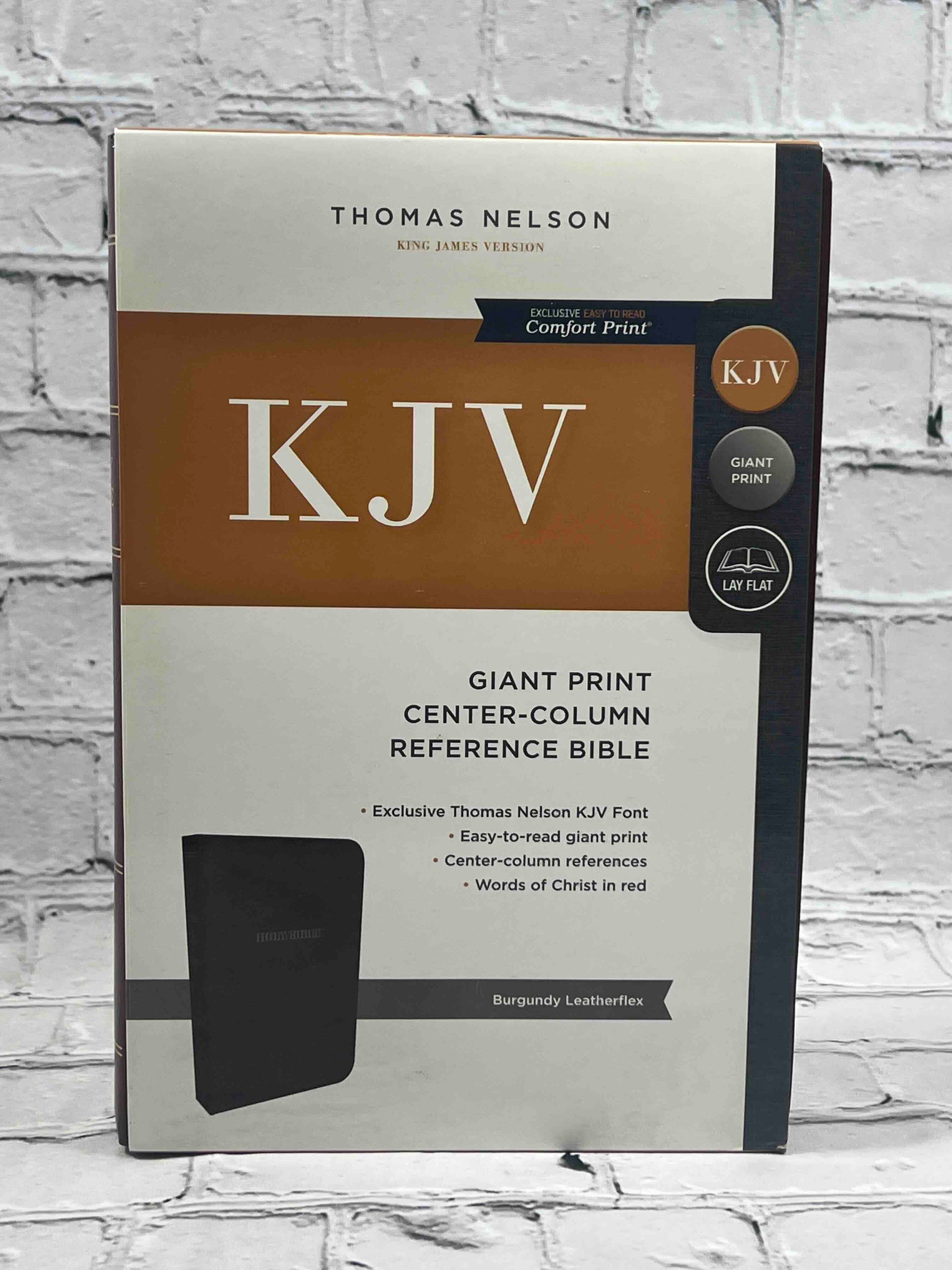 This Bible published in the classic King James Version includes center-column references and giant print type allowing for an easy Bible reading experience. This edition is published in large KJV Comfort Print type, which was designed exclusively for Thomas Nelson to be the most readable at any size.