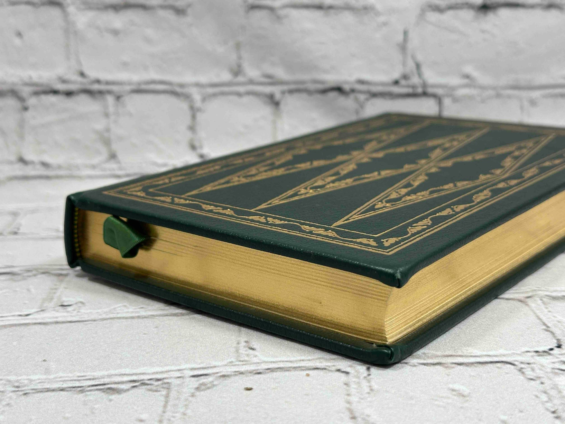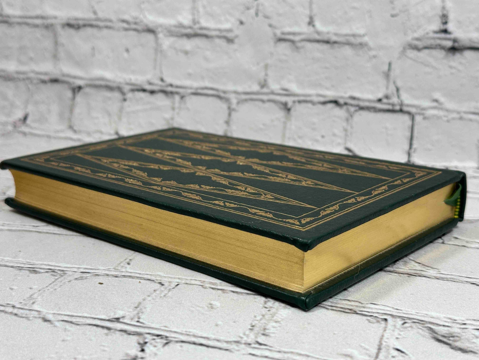 This Franklin Library edition is a beautifully crafted collector’s volume, bound in full premium leather with 22k gold accents. It features gilded page edges and raised spine bands, printed on archival-quality acid-neutral paper with a durable sewn binding. The book is finished with elegant silk moiré endpapers and includes a satin ribbon marker, making it an heirloom-quality addition to any fine library.