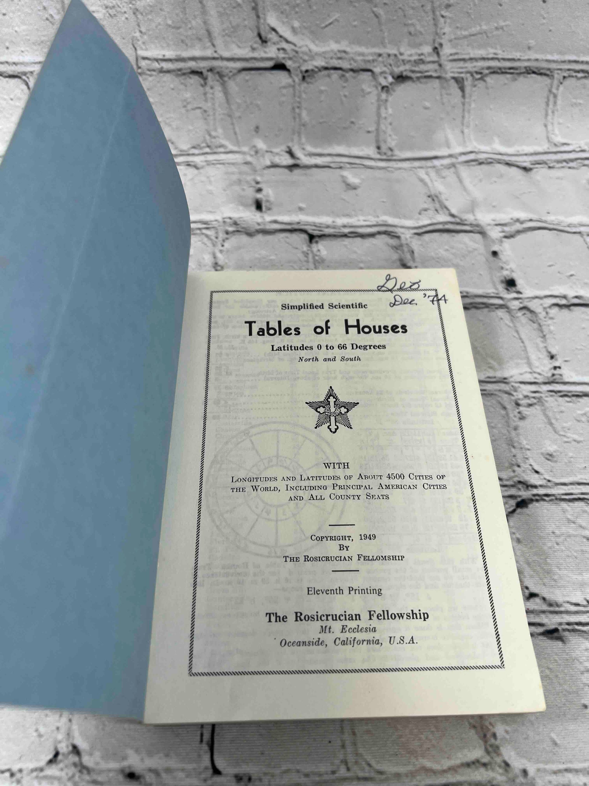 Simplified Scientific Tables of Houses Latitude 0 to 66 Degrees