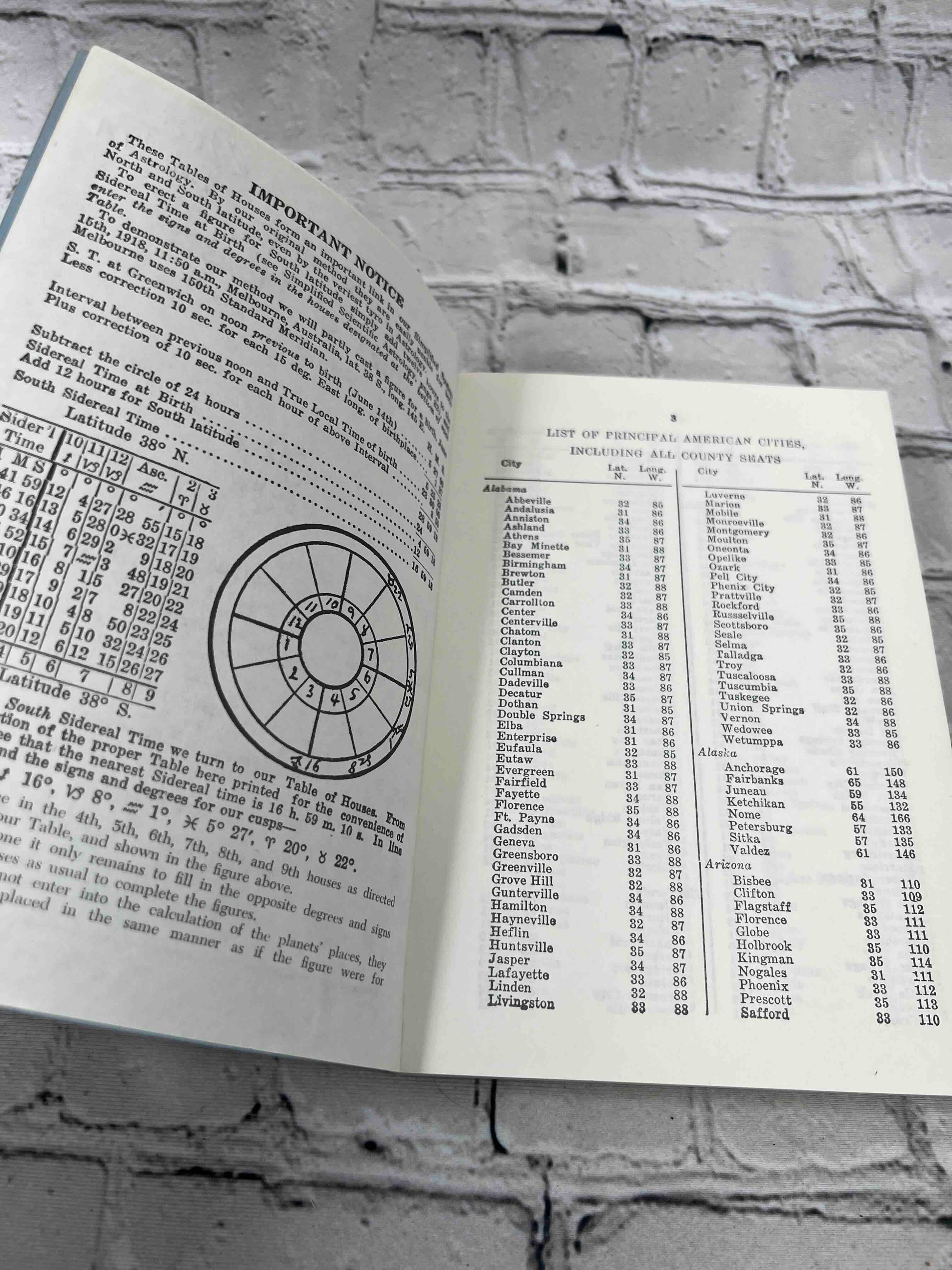 Section Two (The Tables): Contains the astronomical tables for every degree of latitude from 1° to 66° North or South using the Placidian system.